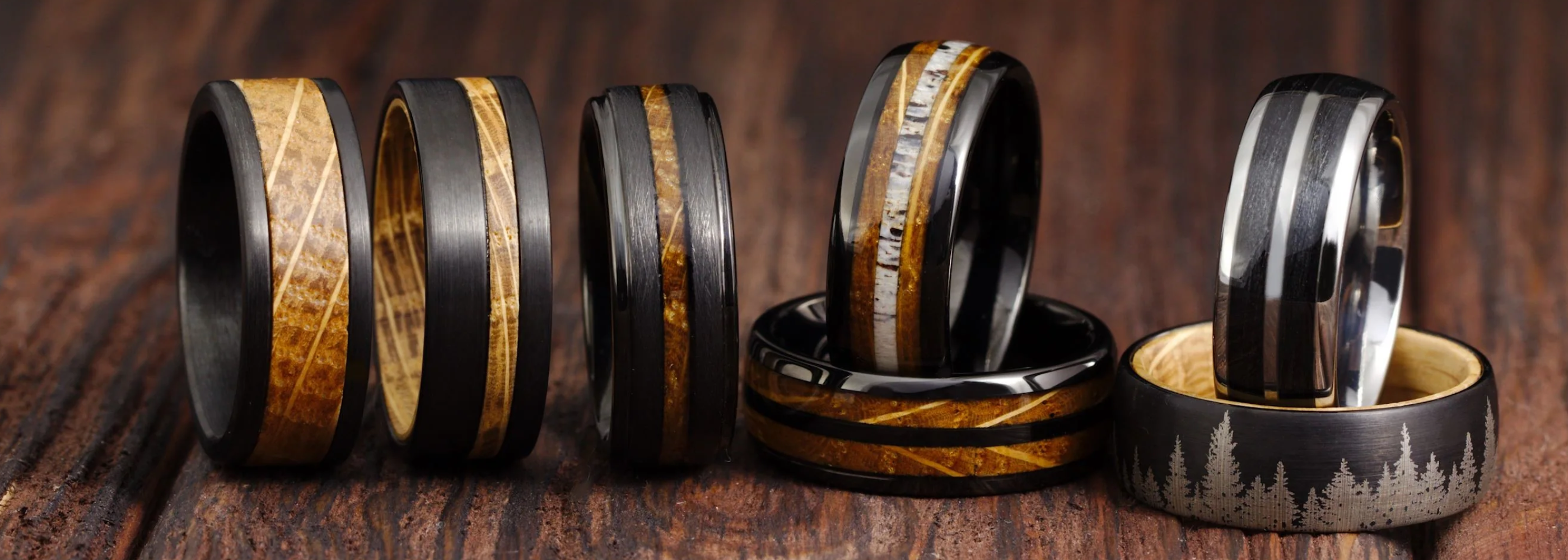 Choosing the right wedding band or ring is an important decision for any groom or gift giver looking for a ring for the man in their life. From tungsten rings to titanium wedding bands, the options are as diverse as the individuals who wear them. Many people prefer men’s tungsten wedding bands for their durability and scratch resistance, while others gravitate toward meteorite wedding bands for their unique and celestial designs. Whether you're just exploring manly rings, whiskey barrel wedding bands, or deer antler rings, there's something to suit every style and personality.